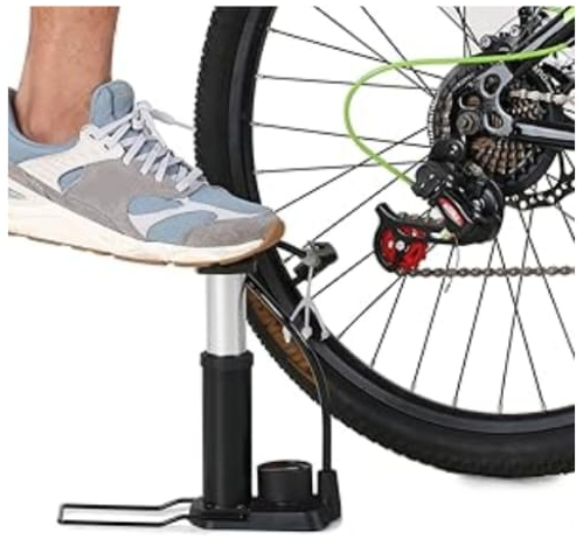 Made with high strength & good quality ABS plastic with sturdy aluminum alloy tube, firm plastic base and durable pump head, provides you with lasting use. This is a single cylinder pressure pump to help you easily. The pump has accurate pressure gauge with anti skid pedal so that your feet does not slip while inflating air in any application.